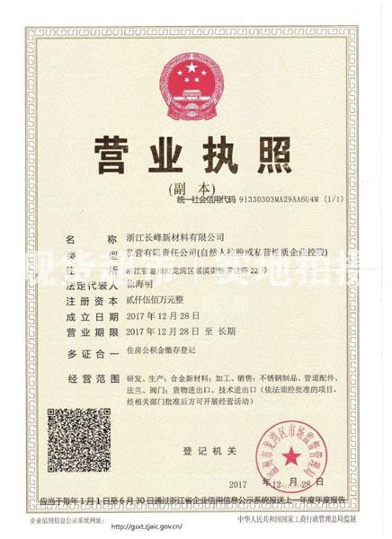 | 企業名稱 | 浙江長峰新材料有限公司 | 統一社會信用代碼 | 91330303MA29AA6U4M |