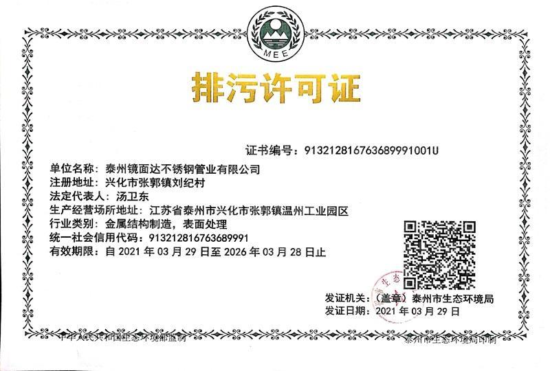 | 企業名稱 | 泰州鏡面達不銹鋼管業有限公司 | 統一社會信用代碼 | 913212816763689991 |