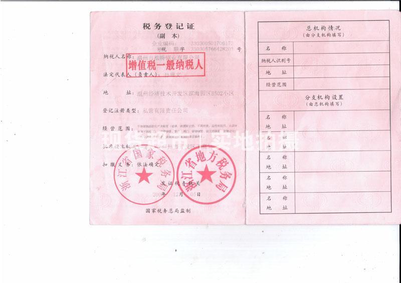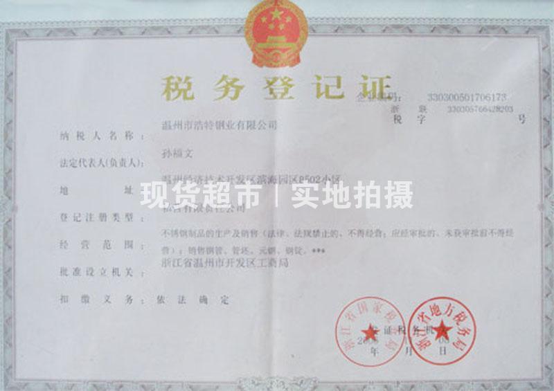 • 溫州市浩特鋼業有限公司,稅務登記證