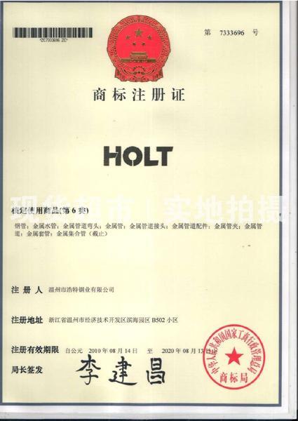 • 溫州市浩特鋼業有限公司,商標注冊證